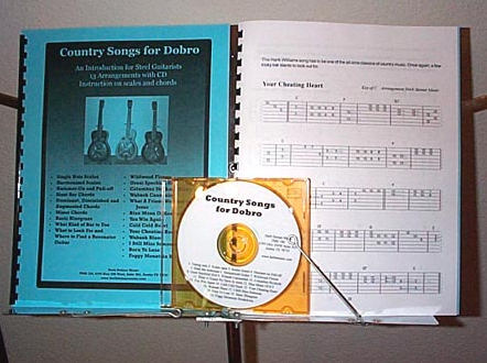 I started out in 1962 on dobro, and really my first professional gig was as a dobroist for Linda Ronstadt in 1968, who then pushed me in playing steel guitar. I never quit playing resonator guitar, and my playing style is rooted in Josh Graves, Shot Jackson, and Pete Kirby. It dawned on me through teaching that steel players frequently are asked to play reso guitar occasionally, but don't really get familiar with the G tuning. So I assembled a course based on the series of lessons I've given to students the last couple of years. The material is a 30-page book and a CD. The book has tabbed arrangements of 13 popular country songs of the past, and essays on scales, slant bar playing, and harmonized scales. I discuss the role of dominant, diminished/augmented, and minor chords and where to find them. I list the major slant bar positions and all harmonized scales I play with them. I also cover three-finger banjo style and an introduction to bluegrass. The CD has me playing the scales, then playing the tunes with a BIAB rhythm track that is suitable for practice. The tunes are (click links for MP3 song samples): Wildwood Flower, Great Speckled Bird, Wabash Cannonball, What A Friend We Have In Jesus, Blue Moon of Kentucky, You Win Again, Cold Cold Heart, Your Cheating Heart, Wabash Blues, I Still Miss Someone, Born To Lose, and Foggy Mountain Breakdown. The book assumes the player knows how to hold the bar, wear picks, read simple tablature, and has a little experience with music. The tab and the material is for the beginner with a little experience, or the intermediate player. A totally rank beginner in music might find the material a little over his head without private instruction. Out of Stock postage paid. |